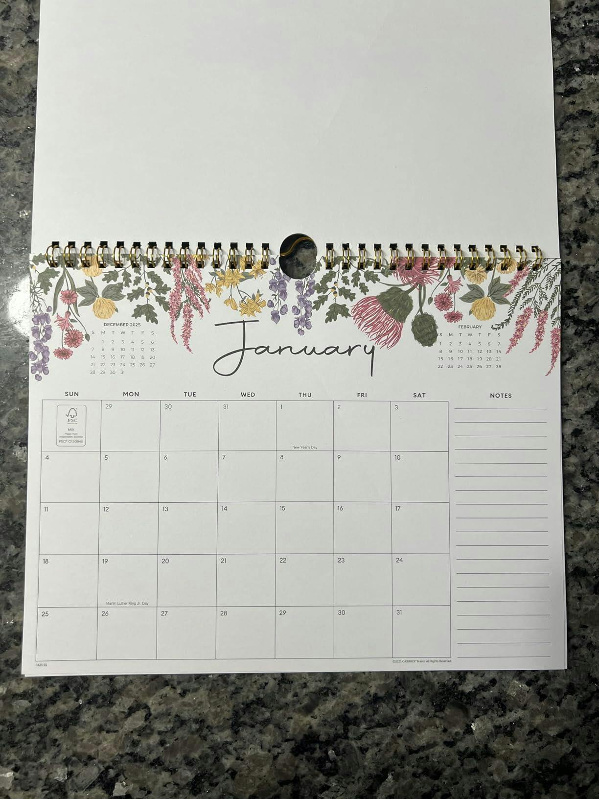 I ordered this calendar to get ready for 2026. I wanted something that could hang on my wall in my office and looks professional, and sleek. This one definitely is it! The flowers on each month are all a little bit different with different colors. I will say I wish it had the moon cycles on it like some calendars do… I work in healthcare and I always like to be prepared when the full moon is coming up!