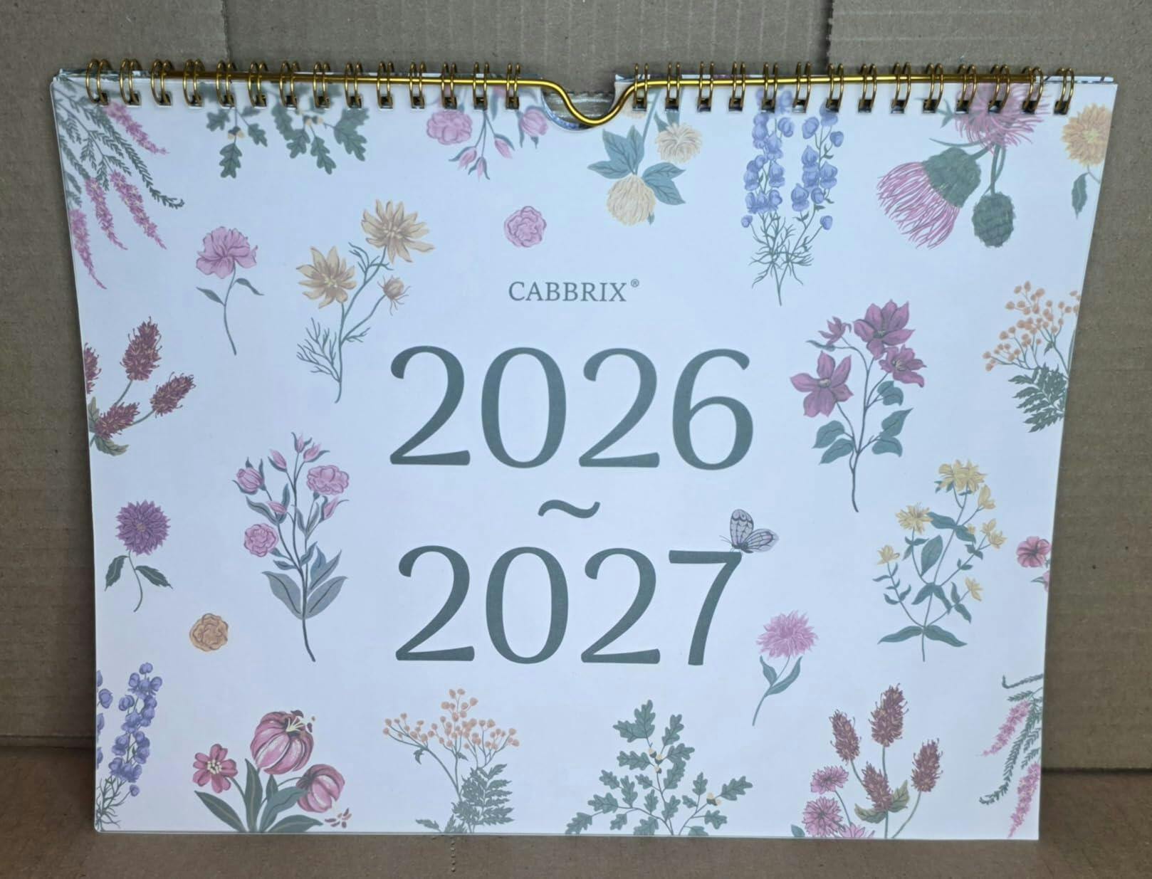 This 2026 Cabbrix Wall Calendar is exactly what I needed to stay organized. I really like that it includes 18 months, from January 2026 through June 2027, so I can plan ahead without changing calendars in the middle of the year. The paper is thick and should not bleed through when I use markers or pens. The large 12" x 15" size gives plenty of room to write notes and appointments, and the twin-wire binding makes it easy to flip pages. It’s sturdy, well made, and perfect for home or office use. Highly recommend!