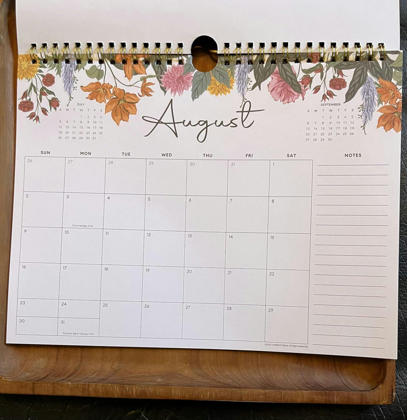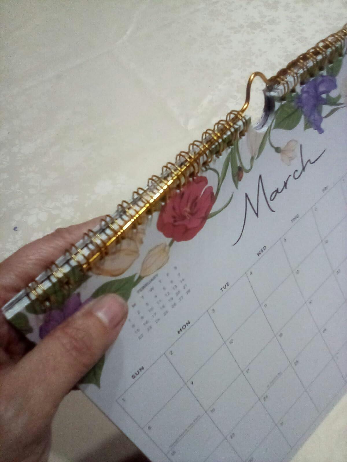 I really like this calendar! The flowers on the pages are beautiful, and the twin wire binding makes it easy to flip each page behind and hang it neatly on the wall. The layout is clean, with plenty of space to write notes. Great quality for the price and keeping organized in style.