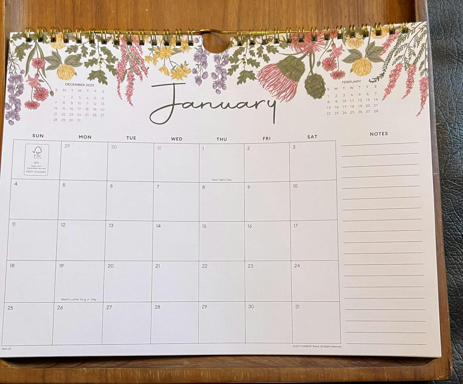 As we approach 2026, I was looking for a new calendar, and the “Notes” section on the side caught my eye. It’s perfect for jotting down things I don’t want to forget but that don’t need a specific date. The Notes section does make the date squares smaller, but there’s still enough room to write appointments and birthdays. If you write larger, I would maybe not recommend this due to the square size.